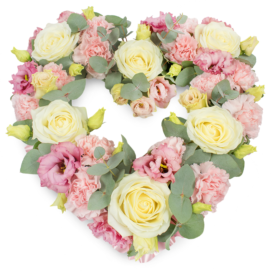 This sophisticated floral arrangement is thoughtfully designed for those who cherish and honor timeless memories. With pristine white roses, gentle pink carnations, and delicate pink lisianthus, accented by the natural beauty of eucalyptus leaves, each bloom radiates an air of elegance. Our meticulous hand-selection process ensures that every flower meets the highest quality standards.